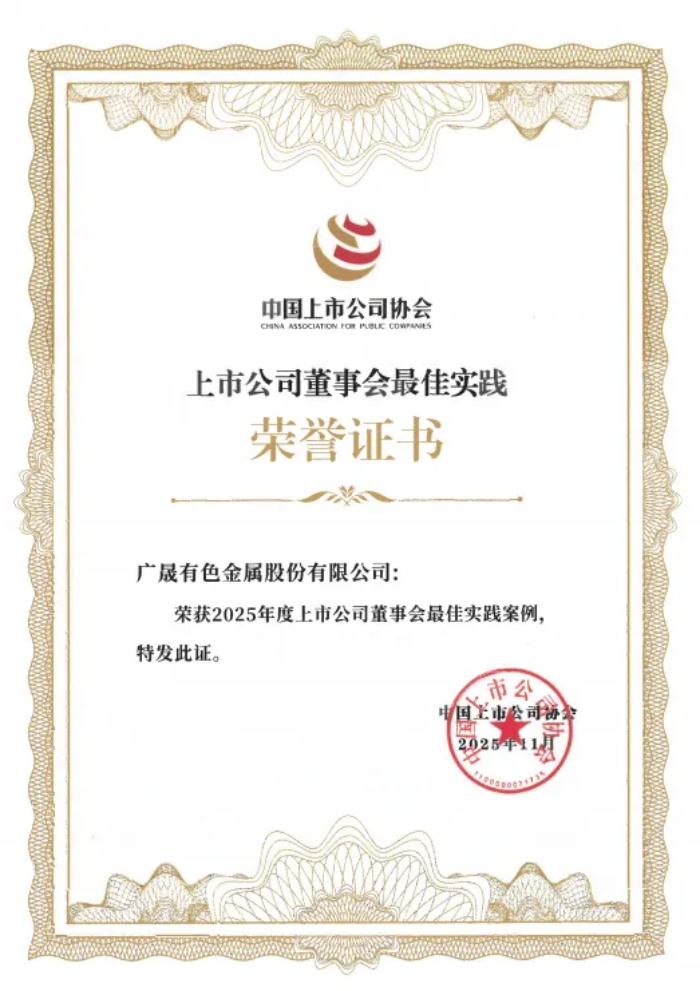 克日,,,,,,,中国上市公司协会正式宣布“2025年上市公司董事会最佳实践建设运动”评选效果,,,,,,,广晟有色金属股份有限公司(简称“广晟有色”)依附规范高效的治理实践,,,,,,,荣获“2025年上市公司董事会最佳实践案例”声誉,,,,,,,彰显国资央企上市公司治理标杆实力。。。。。。